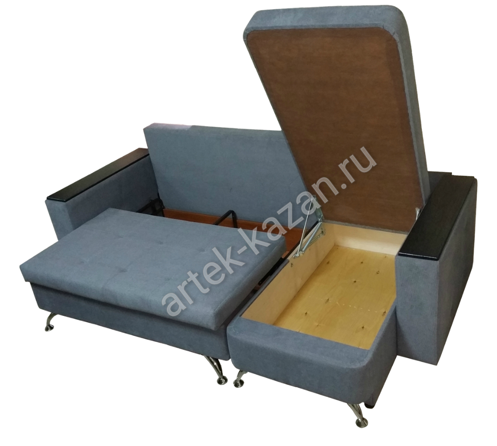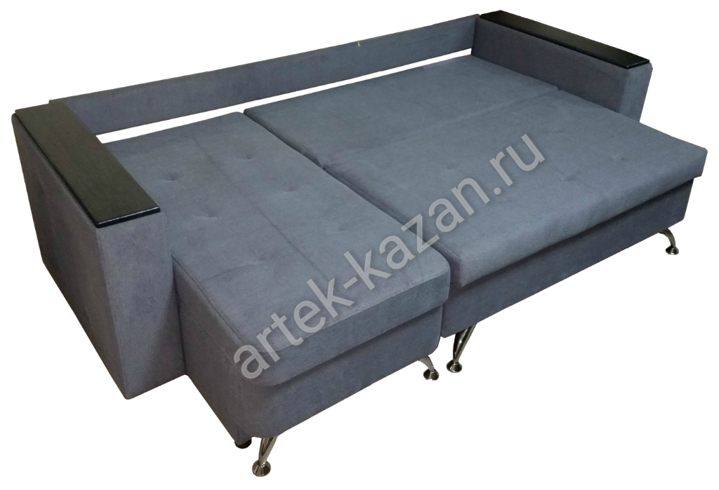 Диван в сложенном состоянии Диван в разложенном состоянии Бельевой ящик диванаУгловой диван на металлическом каркасе с механизмом тик-так, который изготавливается на заводе в г. Ульяновск. На каркас прикручивается фанера 9мм., на фанеру сверху приклеивается ППУ либо пружинный блок по желанию. Благодаря фанере в 9мм. на каркасе, диван не боится точечную нагрузку, то есть на диван, например, можно вставать ногами без риска поломки, но, конечно, при умеренной нагрузке. Длину дивана можно увеличивать или уменьшать на заказ с шагом 10см. до определенного размера. Форму подлокотников можно менять почти на любой из каталога. Толщина подлокотников разная, поэтому общий габарит будет меняться. В некоторых подлокотниках, таких как С5 - Сидней 5, можно вносить изменения в размер. Ящик для белья есть в обоих частях дивана. Сторону угла можно менять, в некоторых случаях сторону угла изменить нельзя. Форму нижней части дивана и ножки можно менять. Диван можно сделать П-образным. Цена на диван зависит от выбранной ткани, присутствия декоративной отстрочки, наполнителя, размеров, формы подушек и их наполнения и т.д. Все нюансы по поводу внесений изменений и цены обговариватюся при оформлении заказа. Если возникли какие-нибудь вопросы по дивану, то с удовольствием на них отвечу.