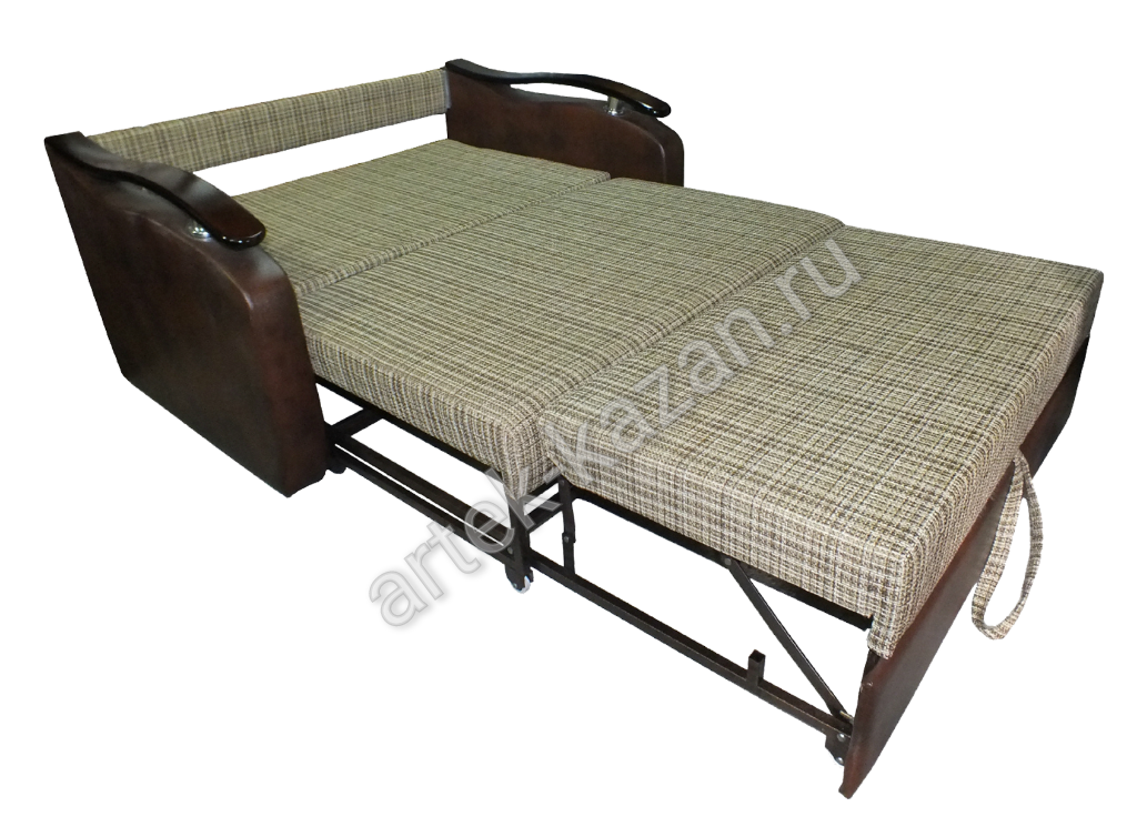 Диван в сложенном состоянии Диван в разложенном состоянии Мини-диван на металлическом каркасе с механизмом тройной расклад, который изготавливается на заводе в г. Ульяновск. На каркас прикручивается фанера 9мм., на фанеру сверху приклеивается ППУ (на пружинном блоке не изготавливается). Благодаря фанере в 9мм. на каркасе, мини-диван не боится точечную нагрузку, то есть на мини-диван, например, можно вставать ногами без риска поломки, но, конечно, при умеренной нагрузке. Слабое место - спинка, она не предназначена выдерживать весь вес человека и может прогнуться в середине и чем больше ширина спального места тем выше такая вероятность так как посередине из-за конструктивных особенностей механизма нет упора. Ширину спального места можно увеличивать или уменьшать на заказ с шагом 10см. в пределах от 60см. до 170см. То есть при ширине 60см. диван получится как кресло-кровать. Форму подлокотников можно менять почти на любой из каталога. Толщина подлокотников разная, поэтому общий габарит будет меняться. В некоторых подлокотниках, таких как С5 - Сидней 5, можно вносить изменения в размер. Форму нижней части дивана можно менять. Цена на диван зависит от выбранной ткани, присутствия декоративной отстрочки, плотности ППУ, размеров, формы подушек и их наполнения и т.д. Все нюансы по поводу внесений изменений и цены обговариватюся при оформлении заказа. Если возникли какие-нибудь вопросы по дивану, то с удовольствием на них отвечу.