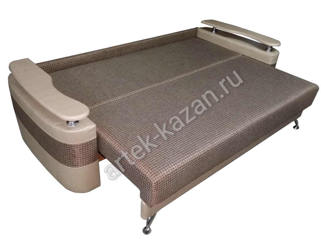 Диван в сложенном состоянии Диван в разложенном состоянии ВидеообзорДиван на металлическом каркасе с механизмом тик-так, который изготавливается на заводе в г. Ульяновск. Данный механизм завоевал популярность за счет простоты конструкции и долговечности механизма. Сидушка, при трансформации по круговой траектории, перемещается вперед или назад, не создавая, при этом, какое-либо воздействие на пол, что очень удобно, если на полу есть ковер и т.п. Спинка, при трансформации дивана в кровать, опускается вниз, занимая изначальное место сидушки. На каркас прикручивается фанера 9мм., на фанеру сверху приклеивается ППУ либо пружинный блок по желанию. Благодаря фанере в 9мм. на каркасе, диван не боится точечную нагрузку, то есть на диван, например, можно вставать ногами без риска поломки, но, конечно, при умеренной нагрузке. Длину дивана можно увеличивать или уменьшать на заказ с шагом 10см. до определенного размера. Форму подлокотников можно менять почти на любой из каталога. Толщина подлокотников разная, поэтому общий габарит будет меняться. В некоторых подлокотниках, таких как С5 - Сидней 5, можно вносить изменения в размер. Форму нижней части дивана и ножки можно менять. Цена на диван зависит от выбранной ткани, присутствия декоративной отстрочки, наполнителя, размеров, формы подушек и их наполнения и т.д. Все нюансы по поводу внесений изменений и цены обговариватюся при оформлении заказа. Если возникли какие-нибудь вопросы по дивану, то с удовольствием на них отвечу.