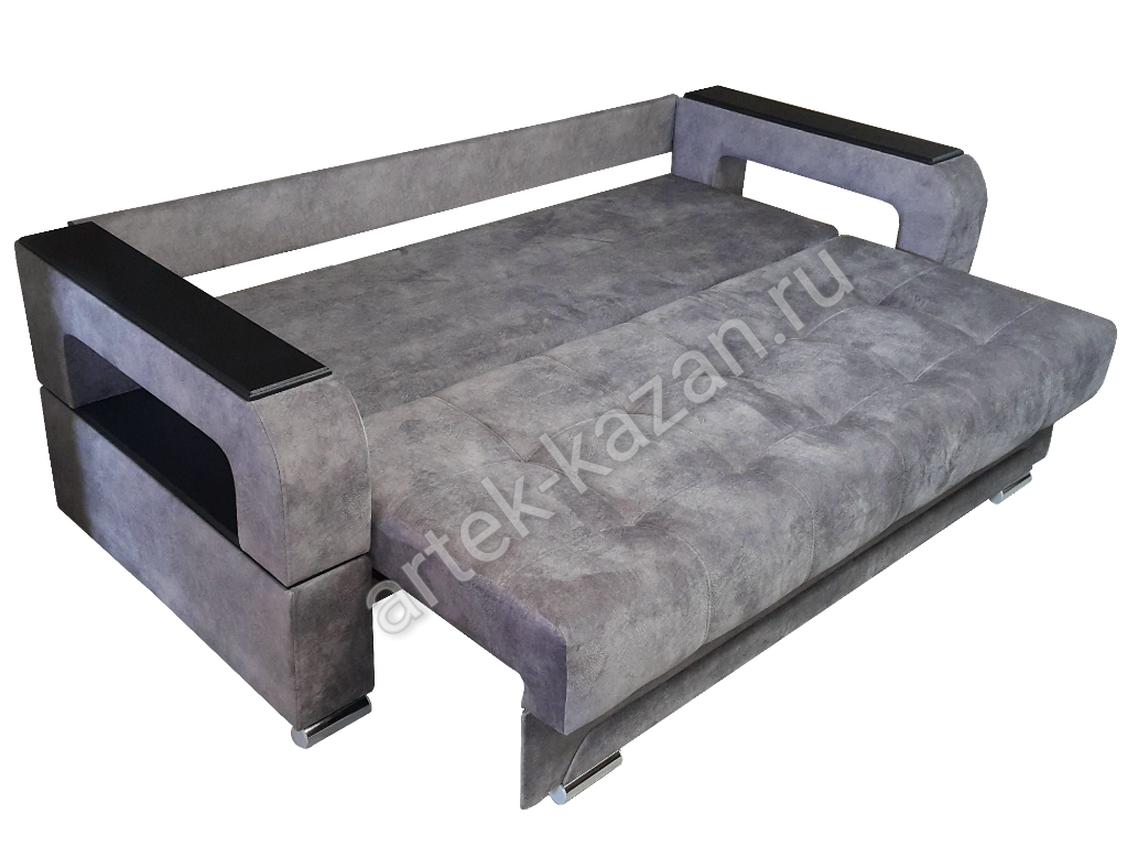 Диван в сложенном состоянии Диван в разложенном состоянии ВидеообзорДиван на металлическом каркасе с механизмом тик-так, который изготавливается на заводе в г. Ульяновск. Данный механизм завоевал популярность за счет простоты конструкции и долговечности механизма. Сидушка, при трансформации по круговой траектории, перемещается вперед или назад, не создавая, при этом, какое-либо воздействие на пол, что очень удобно, если на полу есть ковер и т.п. Спинка, при трансформации дивана в кровать, опускается вниз, занимая изначальное место сидушки. На каркас прикручивается фанера 9мм., на фанеру сверху приклеивается ППУ либо пружинный блок по желанию. Благодаря фанере в 9мм. на каркасе, диван не боится точечную нагрузку, то есть на диван, например, можно вставать ногами без риска поломки, но, конечно, при умеренной нагрузке. Длину дивана можно увеличивать или уменьшать на заказ с шагом 10см. до определенного размера. Форму подлокотников можно менять почти на любой из каталога. Толщина подлокотников разная, поэтому общий габарит будет меняться. В некоторых подлокотниках, таких как С5 - Сидней 5, можно вносить изменения в размер. Форму нижней части дивана и ножки можно менять. Цена на диван зависит от выбранной ткани, присутствия декоративной отстрочки, наполнителя, размеров, формы подушек и их наполнения и т.д. Все нюансы по поводу внесений изменений и цены обговариватюся при оформлении заказа. Если возникли какие-нибудь вопросы по дивану, то с удовольствием на них отвечу.