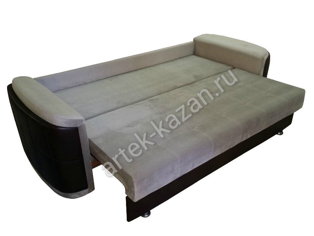 Диван в сложенном состоянии Диван в разложенном состоянии ВидеообзорДиван на металлическом каркасе с механизмом тик-так, который изготавливается на заводе в г. Ульяновск. Данный механизм завоевал популярность за счет простоты конструкции и долговечности механизма. Сидушка, при трансформации по круговой траектории, перемещается вперед или назад, не создавая, при этом, какое-либо воздействие на пол, что очень удобно, если на полу есть ковер и т.п. Спинка, при трансформации дивана в кровать, опускается вниз, занимая изначальное место сидушки. На каркас прикручивается фанера 9мм., на фанеру сверху приклеивается ППУ либо пружинный блок по желанию. Благодаря фанере в 9мм. на каркасе, диван не боится точечную нагрузку, то есть на диван, например, можно вставать ногами без риска поломки, но, конечно, при умеренной нагрузке. Длину дивана можно увеличивать или уменьшать на заказ с шагом 10см. до определенного размера. Форму подлокотников можно менять почти на любой из каталога. Толщина подлокотников разная, поэтому общий габарит будет меняться. В некоторых подлокотниках, таких как С5 - Сидней 5, можно вносить изменения в размер. Форму нижней части дивана и ножки можно менять. Цена на диван зависит от выбранной ткани, присутствия декоративной отстрочки, наполнителя, размеров, формы подушек и их наполнения и т.д. Все нюансы по поводу внесений изменений и цены обговариватюся при оформлении заказа. Если возникли какие-нибудь вопросы по дивану, то с удовольствием на них отвечу.