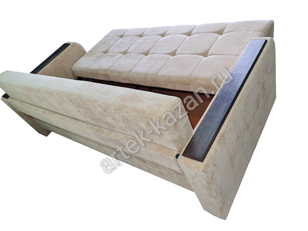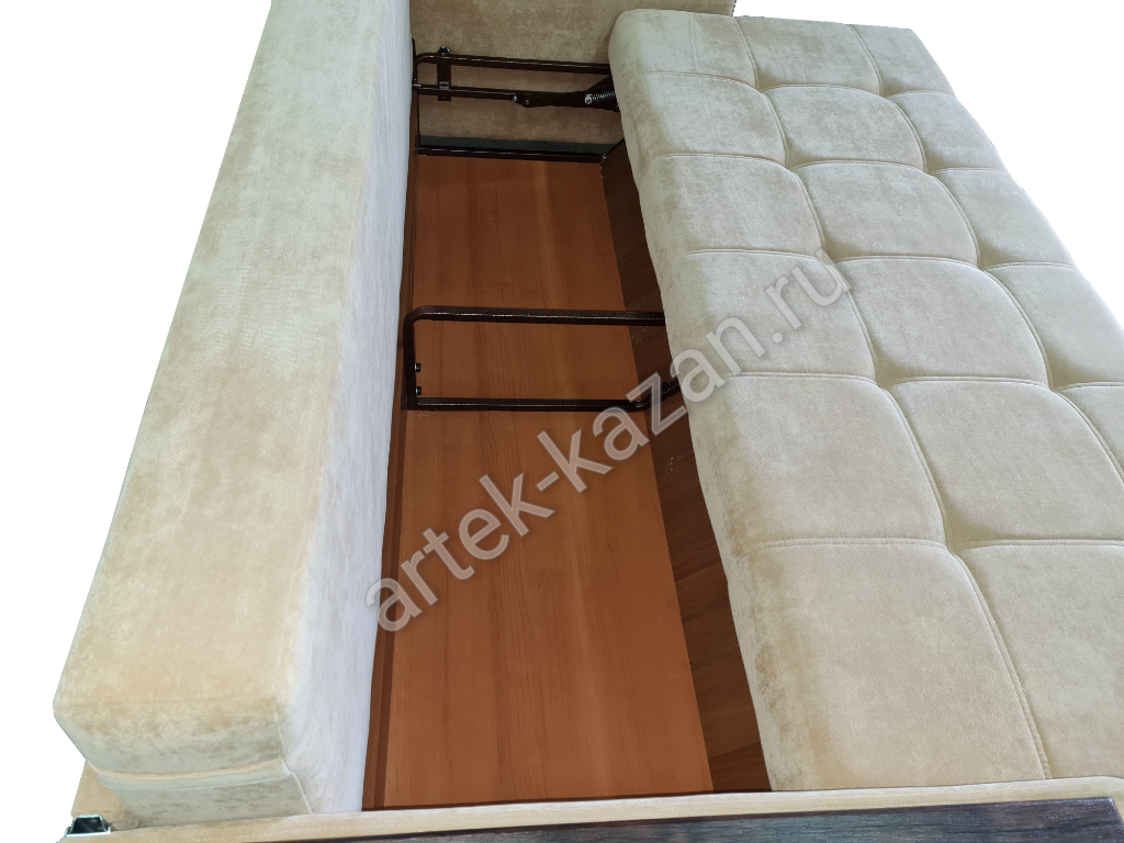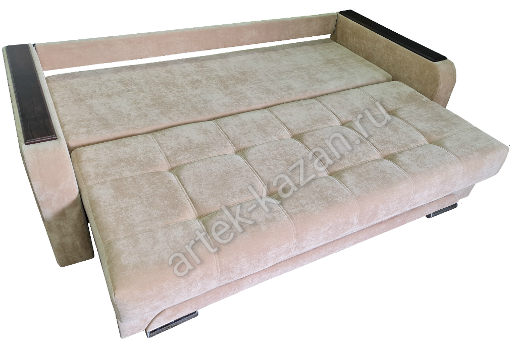 Диван в сложенном состоянии Диван в разложенном состоянии Вид сзадиБельевой ящик диванаВидеообзорДиван на металлическом каркасе с механизмом тик-так, который изготавливается на заводе в г. Ульяновск. Данный механизм завоевал популярность за счет простоты конструкции и долговечности механизма. Сидушка, при трансформации по круговой траектории, перемещается вперед или назад, не создавая, при этом, какое-либо воздействие на пол, что очень удобно, если на полу есть ковер и т.п. Спинка, при трансформации дивана в кровать, опускается вниз, занимая изначальное место сидушки. На каркас прикручивается фанера 9мм., на фанеру сверху приклеивается ППУ либо пружинный блок по желанию. Благодаря фанере в 9мм. на каркасе, диван не боится точечную нагрузку, то есть на диван, например, можно вставать ногами без риска поломки, но, конечно, при умеренной нагрузке. Длину дивана можно увеличивать или уменьшать на заказ с шагом 10см. до определенного размера. Форму подлокотников можно менять почти на любой из каталога. Толщина подлокотников разная, поэтому общий габарит будет меняться. В таких подлокотниках как С5 - Сидней 5, можно вносить изменения в размер. Форму нижней части дивана и ножки можно менять. Цена на диван зависит от выбранной ткани, присутствия декоративной отстрочки, наполнителя, размеров, формы подушек и их наполнения и т.д. Все нюансы по поводу внесений изменений и цены обговариватюся при оформлении заказа. Если возникли какие-нибудь вопросы по дивану, то с удовольствием на них отвечу.