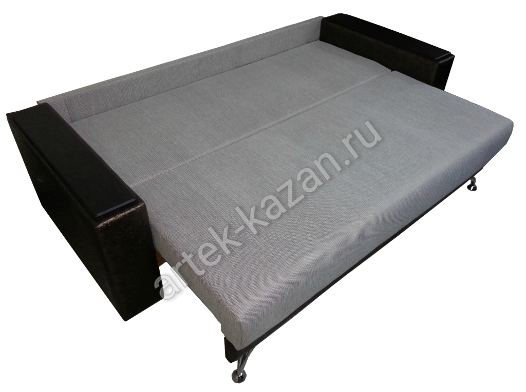 Диван в сложенном состоянии Диван в разложенном состоянии ВидеообзорДиван на металлическом каркасе с механизмом тик-так, который изготавливается на заводе в г. Ульяновск. Данный механизм завоевал популярность за счет простоты конструкции и долговечности механизма. Сидушка, при трансформации по круговой траектории, перемещается вперед или назад, не создавая, при этом, какое-либо воздействие на пол, что очень удобно, если на полу есть ковер и т.п. Спинка, при трансформации дивана в кровать, опускается вниз, занимая изначальное место сидушки. На каркас прикручивается фанера 9мм., на фанеру сверху приклеивается ППУ либо пружинный блок по желанию. Благодаря фанере в 9мм. на каркасе, диван не боится точечную нагрузку, то есть на диван, например, можно вставать ногами без риска поломки, но, конечно, при умеренной нагрузке. Длину дивана можно увеличивать или уменьшать на заказ с шагом 10см. до определенного размера. Форму подлокотников можно менять почти на любой из каталога. Толщина подлокотников разная, поэтому общий габарит будет меняться. В некоторых подлокотниках, таких как С5 - Сидней 5, можно вносить изменения в размер. Форму нижней части дивана и ножки можно менять. Цена на диван зависит от выбранной ткани, присутствия декоративной отстрочки, наполнителя, размеров, формы подушек и их наполнения и т.д. Все нюансы по поводу внесений изменений и цены обговариватюся при оформлении заказа. Если возникли какие-нибудь вопросы по дивану, то с удовольствием на них отвечу.